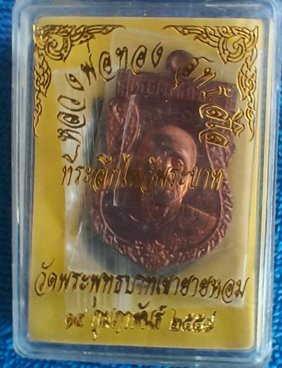 เสมาไหว้พระบาท หลวงพ่อทอง สุทธสีโล วัดพระพุทธบาทเขายายหอม เนื้อทองแดง **๓๒๗๒* มีจารหน้า/หลัง ปี 2557 |