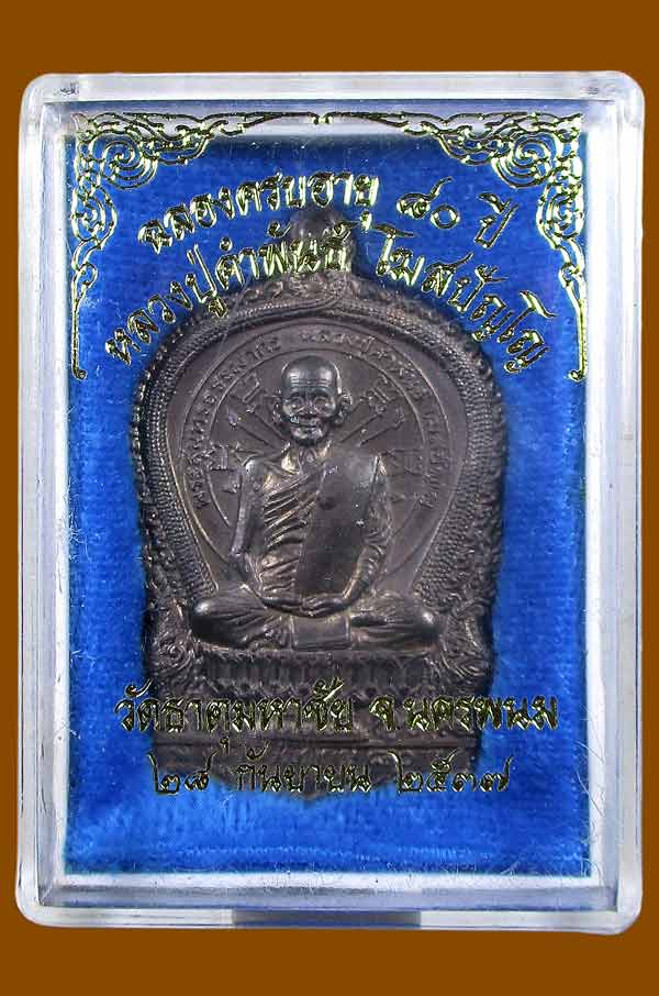 เหรียญนั่งพาน รุ่นอภิมหาทรัพย์ หลวงปู่คำพันธ์ วัดธาตุมหาชัย ปี2537 จ.นครพนม เนื้อนวะโลหะ สภาพสวยเดิม พร้อมกล่องเดิม |
