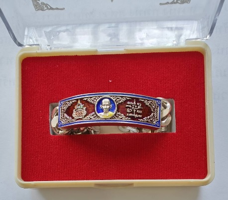 เลสข้อมือหลวงพ่อรวย เนื้อเงินลงยา ขนาด 2 บาท รุ่น 100 ปี พ.ศ. 2564 ไม่เคยผ่านการใช้งาน พร้อมบัตรรับรองพระแท้