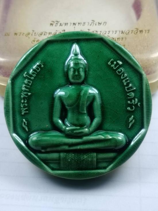 หลวงพ่อโสธร รุ่น ทองประทาน ปี 2550 เนื้อกระเบื้องเคลือบสีเขียว พิมพ์ใหญ่กรรมการ หมายเลข 3216 พร้อมกล่อง |