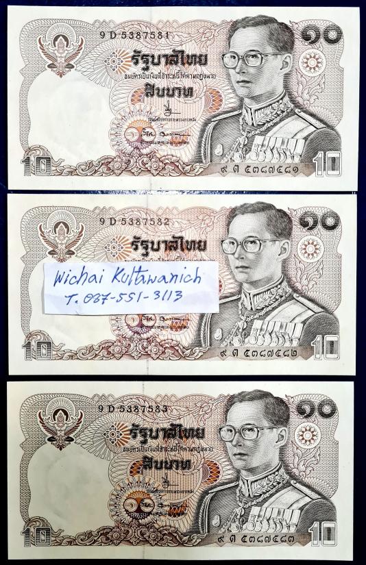 ธนบัตร ร.9 แบบ 12 ชนิดราคา 10 บาท 3 ใบเรียง +3 ใบเรียง สวยๆ ราคาเบาหวิว |