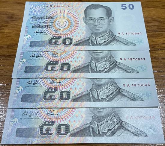 ++++++200++++ธนบัตร50บาท เลขเรียง4ฉบับ สภาพผ่านใช้น้อย มีรอยพับกลางบางๆครับ