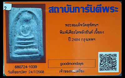 สมเด็จอินโดจีน พิมพ์เศียรโต หลังยันต์ ปี2484 วัดสุทัศน์ กทม. สังฆราชแพ ,เจ้าคุณศรีสนธิ์ ,ลพ.จง ,ลป.นาค ,ลพ.ดิ่ง,ลพ.ทองสุข,ลพ.แช่ม,ลพ.แฉ่ง,ลป.เผือก,ลพ.อี๋,ลพ.รุ่ง,ลพ.นอ,ลพ.เดิม ร่วมปลุกเสก