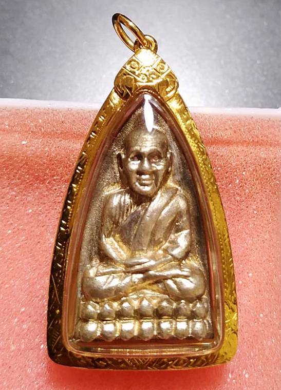 หลวงปู่ทวด อาจารย์นอง วัดทรายขาว รุ่นครบรอบ 77 ปี พิมพ์เตารีดกลาง เนื้อเงิน เลี่ยมทอง พร้อมบัตรจี