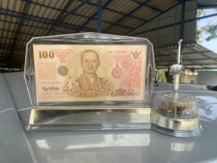 ชื่อพระเครื่อง ธนบัตรที่ระลึกเฉลิมพระชนมพรรษา 7 รอบ พร้อมชุดกรอบอะครีลิค + แซกโซโฟน + กล่องดนตรีเพลงพระราชนิพนธ์เพราะๆ หายาก ตั้งโชว์สวยงาม