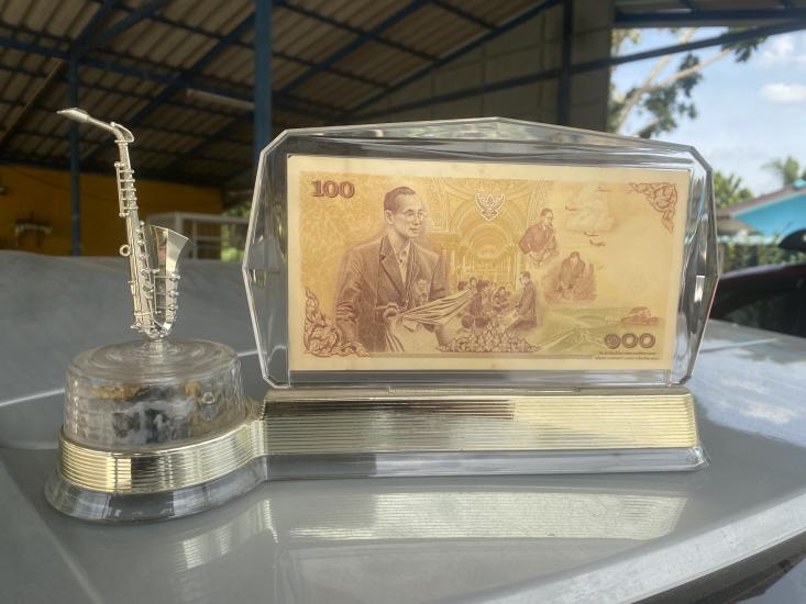ธนบัตรที่ระลึกเฉลิมพระชนมพรรษา 7 รอบ พร้อมชุดกรอบอะครีลิค + แซกโซโฟน + กล่องดนตรีเพลงพระราชนิพนธ์เพราะๆ หายาก ตั้งโชว์สวยงาม