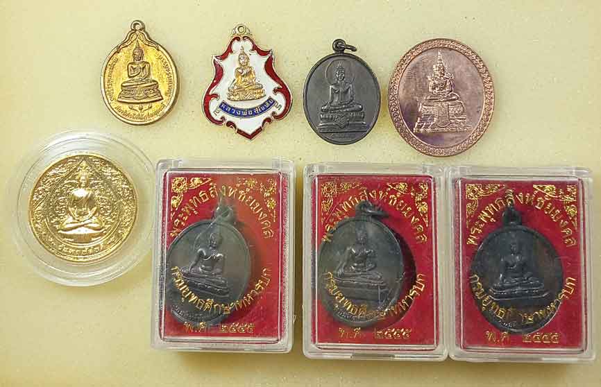 เหรียญพระพุทธสิงห์ชัยมงคล เนื่องในโอกาสสร้างหอพระพุทธสิงห์ชัยมงคล กรมยุทธศึกษาทหารบก สร้างปี 2555 3 เหรียญ กล่องเดิม |