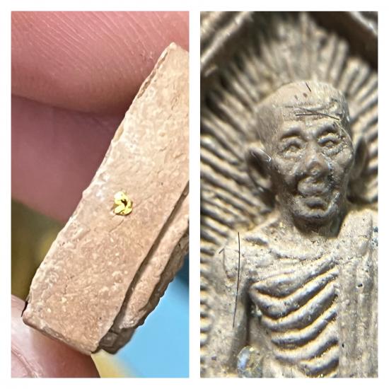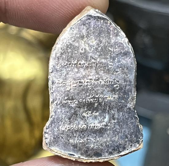 พระผงข้าวก้นบาตร ปี35 หลังแผ่นเงินตะกรุดทองคำ พิเศษองค์นี้มีเกศาหลวงพ่อหลายเส้นครับ แบบนี้หายาก หลวงพ่อเกษมเขมโก |