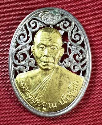 เหรียญลายฉลุ หลัง สก. หลวงพ่อคูณ วัดบ้านไร่ เนื้อเงิน หน้ากากทองคำแท้ ปี 2536