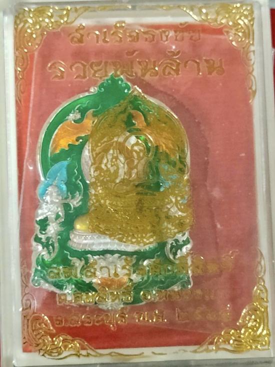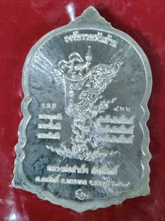 เหรียญหลวงพ่อสำเร็จศัดิ์สิทธิ์ สมเด็จธงชัย รวยพันล้าน จ.สระบุรี เนื้อเงินลงยา ตอกโค๊ต ง.ล.ย. ตอกโค๊ต ช้าง ตอกหมายเลข 422 ปี 2564