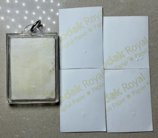 รูปหลวงพ่อลออ และอาจารย์ของท่าน 5 ใบ 1ใบเลี่ยมพาสติกกันน้ำแล้ว มีรอยจุดพินทุทุกบาน