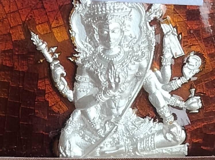 เหรียญมหาพรหม เจ้าสัวพันล้าน (จัดสร้างโดยบอย ท่าพระจันทร์) หมายเลขเลข1089 เนื้อเงิน ลงยาแดงคุ้ยพื้นขอบเขียว