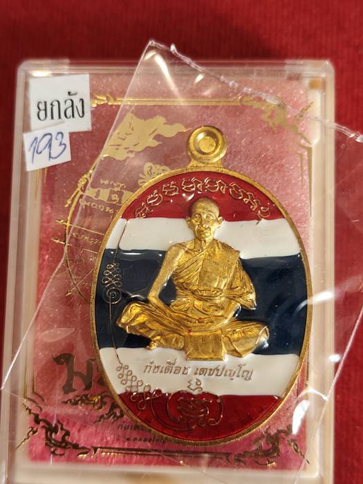 วัดใจ...เนื้อกะไหล่ทอง ลงยาธงชาติ เลข193 (แจกยกลัง และผู้ช่วยงาน) เหรียญ มนต์พระกาฬ รุ่นแรก