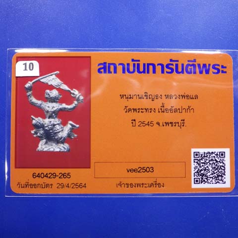 หนุมานเชิญธง หล่อโบราณ เนื้ออัลปาก้า หลวงพ่อแล วัดพระทรง จ.เพชรบุรี ปี 2545...10... (65.10.2 |