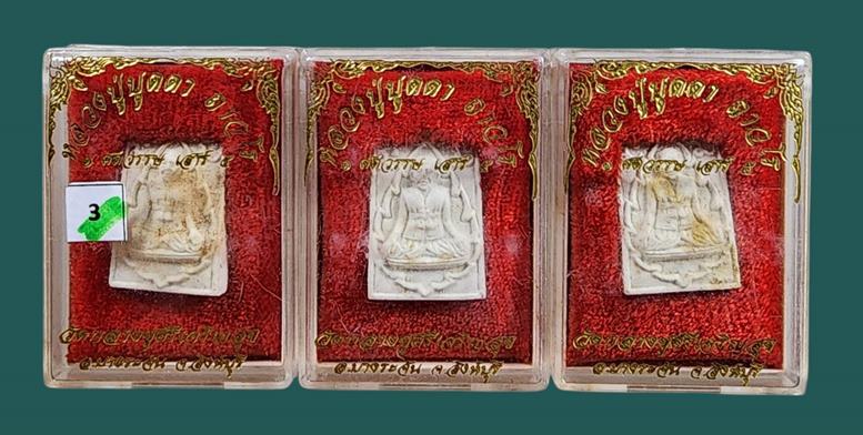 พระผงซุ้มใบโพธิ์หลังยันต์ห้า รุ่น เสาร์ห้ามหามงคลทอง 100 ปี- หลวงปู่บุดดา ถาวโร วัดกลางชูศรีฯ จ.สิงห์บุรี สวยพร้อมกล่องเดิมครับ ( 3 องค์ ) -3 |