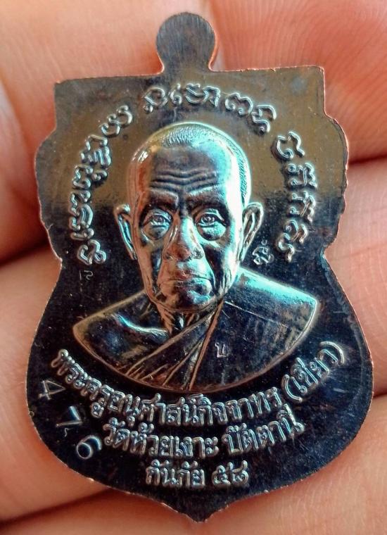 เหรียญเสมาหลวงพ่อทวด พ่อท่านเขียว วัดห้วยเงาะ รุ่นกันภัย 58 เนื้อทองแดงหน้ากากอัลปาก้า ตอกนัมเบอร์ 476 |