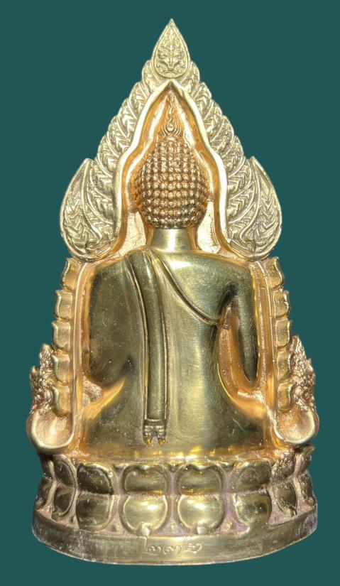 พระกริ่งบูชาพระพุทธชินราชอินโดจีน เนื้อทองเหลือง หน้าตักกว้าง 3 นิ้ว สูง 6 นิ้ว หมายเลข 232 กองบิน 46 สร้าง ปลุกเสกวัดพระศรีรัตนมหาธาตุ |