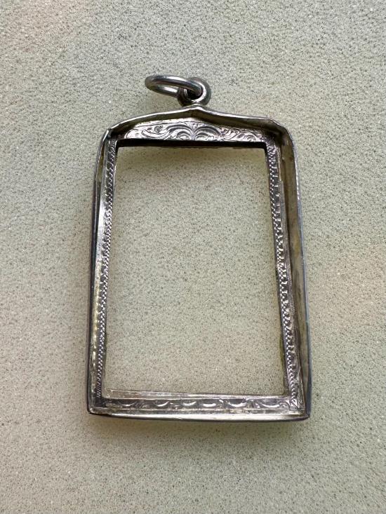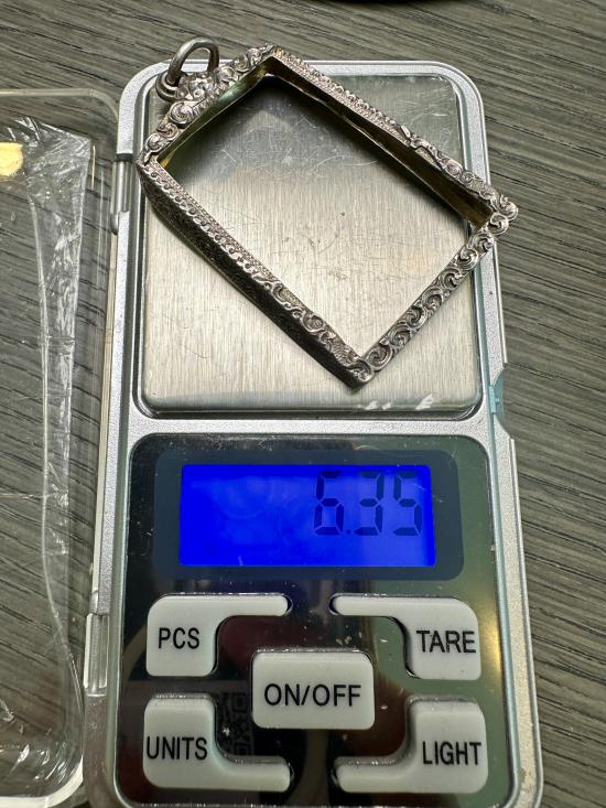 กรอบเงิน ทรงใส่พระสมเด็จ พร้อมใช้งาน หนัก 6.35 กรัม ขนาดวัดจากด้านในกรอบ มีรูปเพิ่มเติมด้านล่างค่ะ