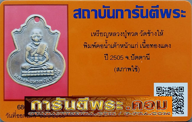 ชื่อพระเครื่อง เหรียญหลวงปู่ทวด วัดช้างให้ พิมพ์คอน้ำเต้าหน้าแก่ เนื้อทองแดง ปี2505