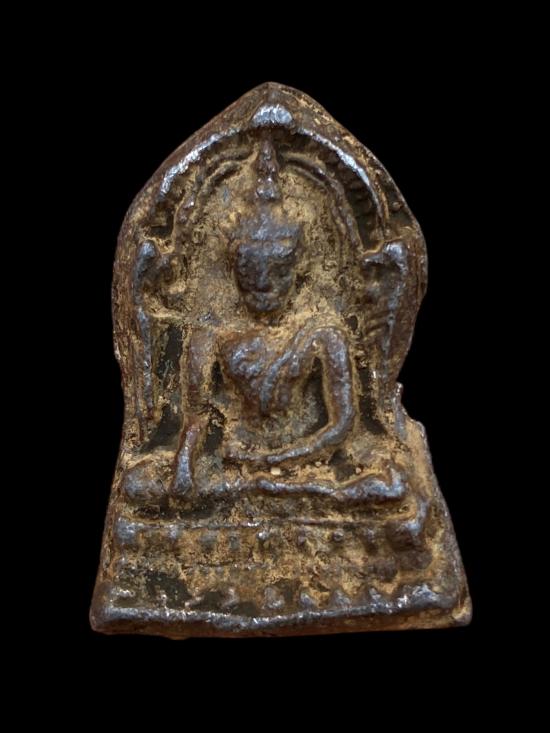 พระเนื้อชินเก่า พิมพ์ประทับนั่งสมาธิภายในซุ้ม ฐานเป็นชั้น