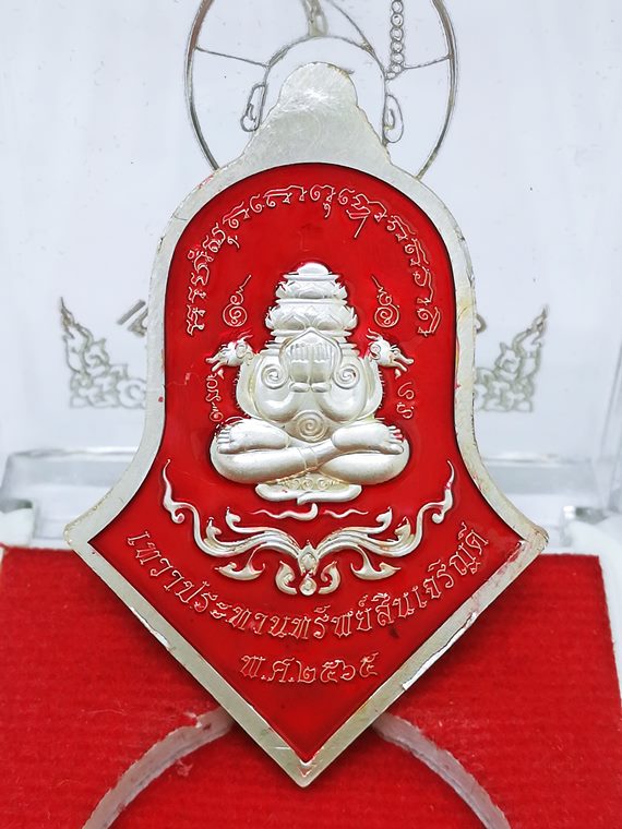 รายละเอียด เหรียญท้าวเวสสุวรรณ พิมพ์ทรงจำปี รุ่น เทวาประทานทรัพย์สินเจริญดี หลวงพ่ออิฏฐ์ วัดจุฬามณี อุปถัมถ์ (ขนาดเหรียญสูง 4 ซม.) เนื้อเงินลงยาเขียว หลังลงยาแดง