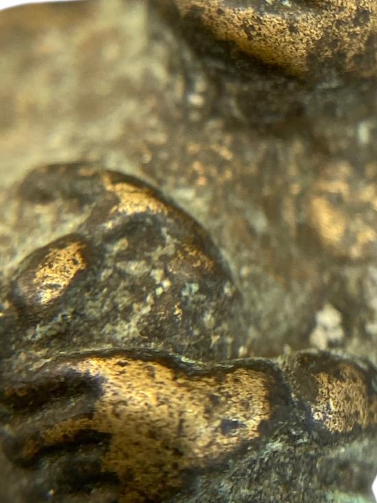 ผิวผ่านกาลเวลา มีคราบสนิมและผิวแห้งตามอายุ เห็นรอยหล่อและรอยตะไบแต่งเก่า