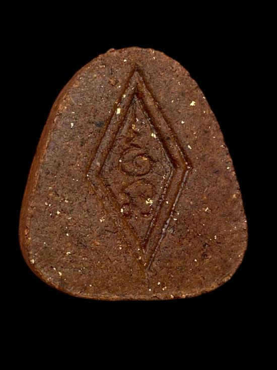 ด้านหลังมียันต์กดลึก เห็นเส้นยันต์ชัดตามสภาพการใช้งาน