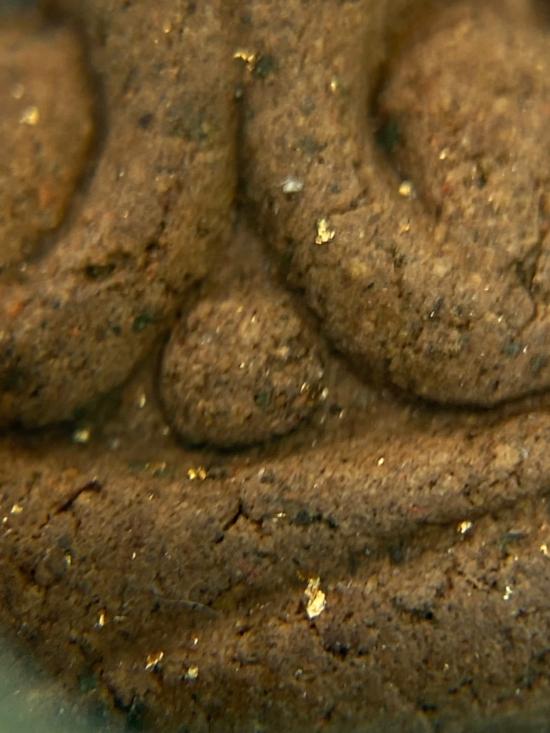 เนื้อผงแห้งเก่า มีมวลสารและเกล็ดแร่กระจาย ผิวธรรมชาติ ไม่ผ่านการล้างหรือแต่ง