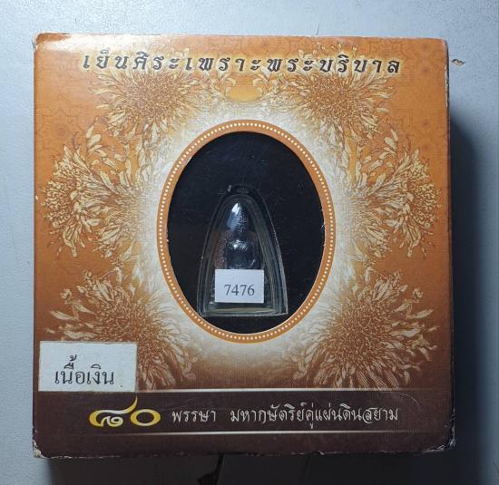 ชื่อพระเครื่อง พระกริ่งพระพุทธรูปคุ้มเกล้าฯ มหามงคล ๘๐ พรรษา เนื้อเงินรมดำ พิมพ์เล็ก #เลข๗๔๗๖ กล่องเดิม ปี2550 ใต้ฐานบรรจุมวลสารศักดิ์สิทธิ์ตามรายละเอียดในรูป