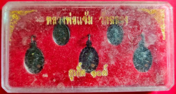 ชุดเม็ดแตงหลวงพ่อแช่ม รุ่น 108 ปี เนื้อทองแดงรมดำ ชุดกล่อง 5 องค์ สวยเดิมๆ