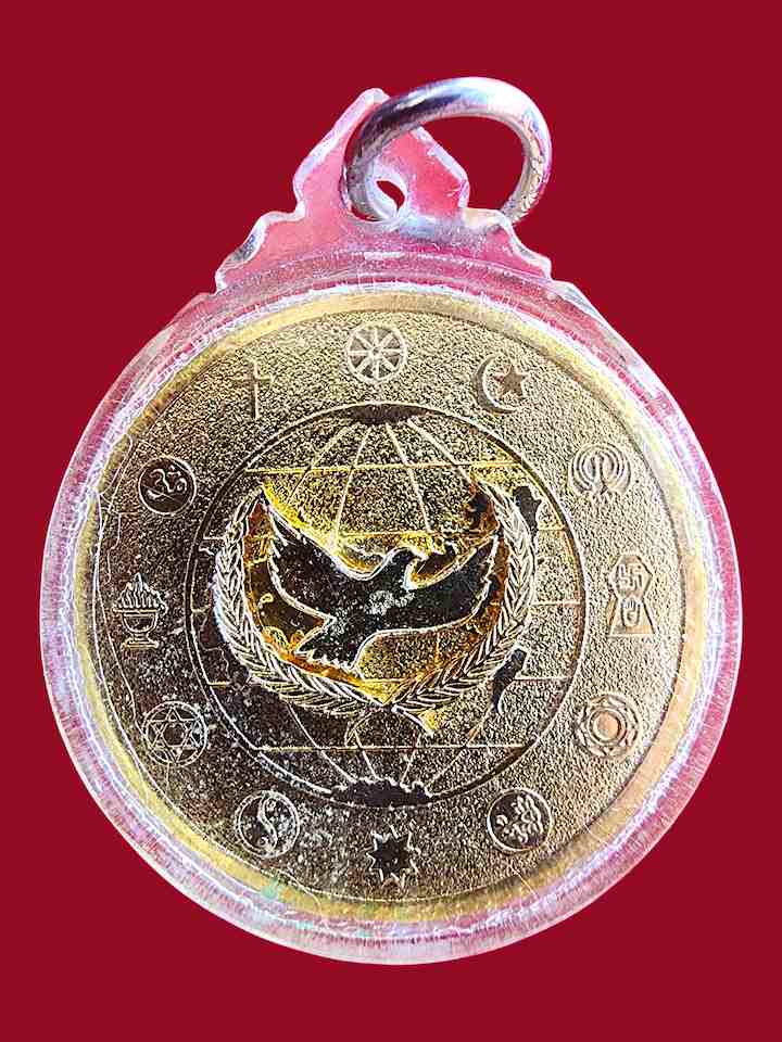 เหรียญมงคลจักรวาล สำนักปู่สวรรค์ เหรียญที่รวม 12 ศาสนาเข้าด้วยกัน สวยพร้อมเลี่ยม |