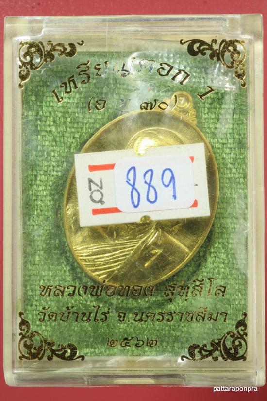 ชื่อพระเครื่อง เหรียญหลวงพ่อทอง รุ่นตอก1 ปี 2562 เนื้อทองฝาบาตร หมายเลข 889