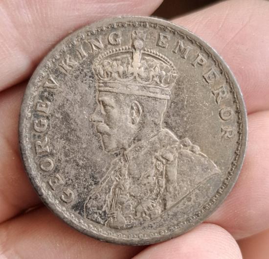เหรียญเงินหนึ่งรูปีอินเดีย (British India One Rupee) ปี ค.ศ. 1913 ซึ่งออกใช้ในรัชสมัยของสมเด็จพระเจ้าจอร์จที่ 5 (King George V)