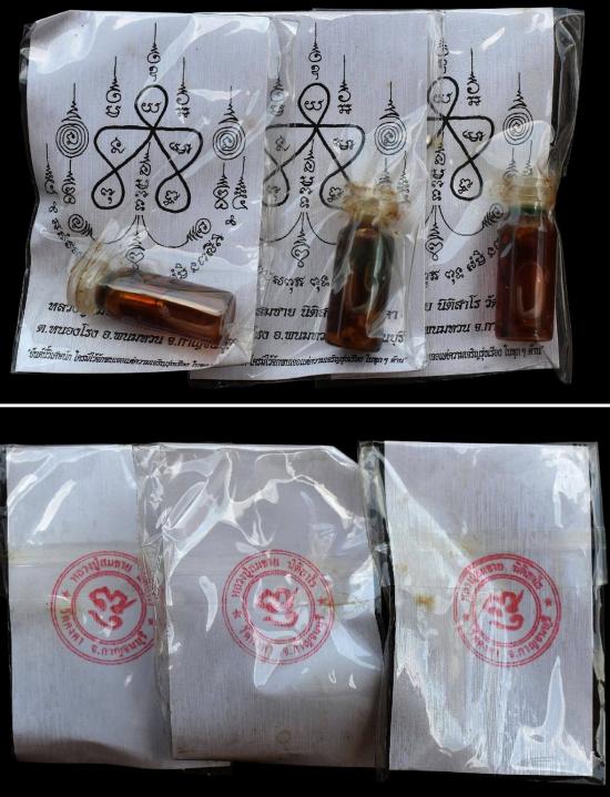 ชุด 3 ขวด...น้ำมันว่านทิพย์จันทรามหาเสน่ห์ ปี 2553 หลวงปู่สมชาย วัดคงคา จ.กาญจนบุรี พร้อมซองใบยันต์เดิมจากวัด สภาพพระตามรูปที่ลงทุกประการ