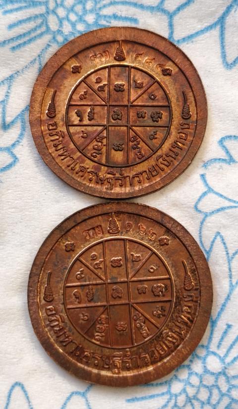 2เหรียญ เนื้อทองแดง พร้อมกล่อง ตอกโค้ตรวยและหมายเลข