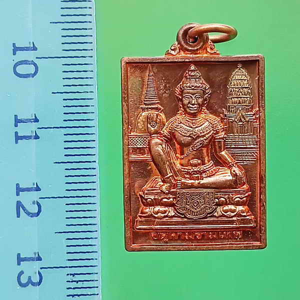 #เหรียญแสตมป์องค์จตุคามรามเทพทวิภพสองแผ่นดินพ่อให้ลูกรวยวัดพุทไธศวรรย์เนื้อทองแดงปี2549