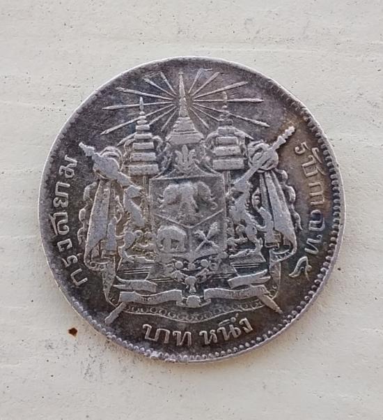 รายละเอียด เหรียญ ร.5 บาทหนึ่ง หลังตราแผ่นดิน เนื้อเงิน. เหรียญที่3