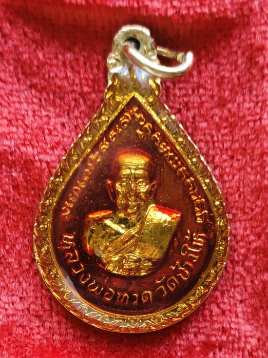 เหรียญหยดน้ำหลวงปู่ทวดปี 22 เนื้อทองแดงกะไหล่ทองลงยาเคลือบเรซิ่น |