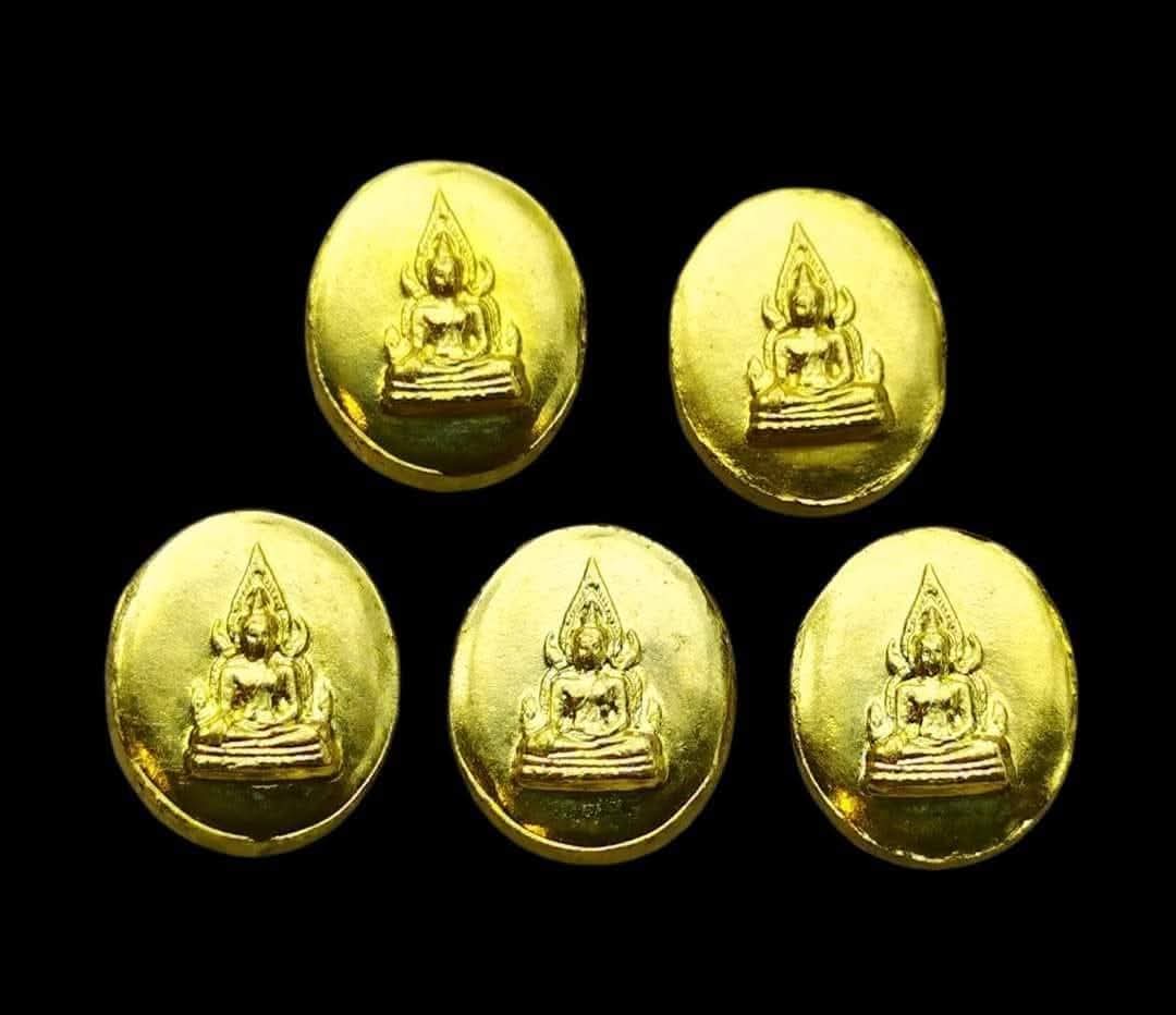 รับ 5 เหรียญ เหรียญเม็ดยาสมเด็จพระ นเรศวรมหาราช พระพุทธชินราช ญสส. เนื้อกะไหล่ทอง มหาพุทธาภิเษก ณ พระ วิหารหลวงพ่อพระพุทธชินราช จังหวัด พิษณุโลก ปี 2543 หลวงปู่หมุน วัดบ้าน จาน หลวงพ่อหวล วัดพุทไธฯ |