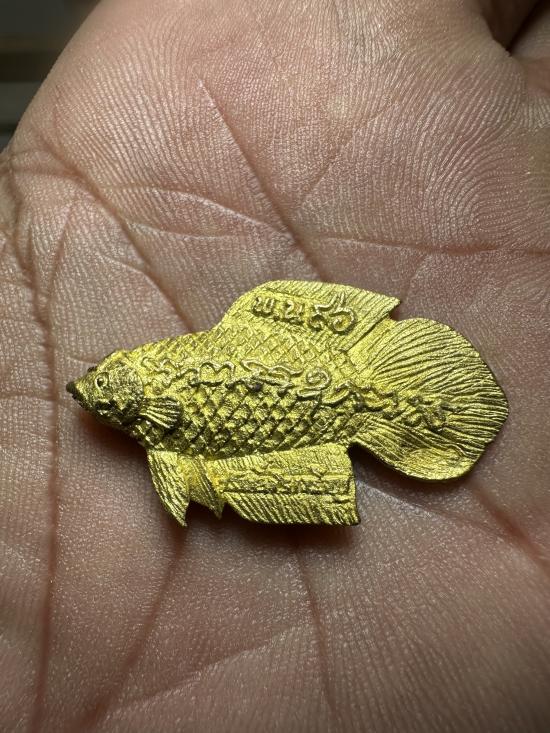 ในระยะแรกนั้น หลวงพ่อทำปลากัดโดยใช้ไม้โลดทะนง และไม้กาหลง มาแกะเป็นรูปปลากัด ลงจารอักขระกำกับ ก่อนจะปลุกเสก แจกแก่ชาวบ้านที่มาร่วมทำบุญ ผู้ที่ได้ไปต่างมีประสบการณ์ทางเมตตาค้าขาย แคล้วคลาดและคงกระพันเป็นที่เลื่องลือ มีคนมาขอเป็นจำนวนมากจนแกะไม่ทัน ต่อมาก็แกะด้วยไม้พญางิ้วดำ งาช้าง แต่ก็แกะไม่ทันความต้องการของชาวบ้าน จึงต้องให้หล่อด้วยโลหะจนถึงปัจจุบัน ปลากัดของหลวงพ่อน่วมได้รับความนิยมแพร่หลายมาก หล่อหลายครั้งหลายหนก็หมดลงในเวลาอันรวดเร็ว ปลากัดของหลวงพ่อน่วมเป็นวัตถุมงคลอันขึ้นชื่อลือชาและมีเอกลักษณ์เป็นหนึ่ง เดียวในโลก ผู้ที่เลื่อมใสที่เอาไปบูชาขอลาภผลในการประกอบกิจการค้าต่างประสบผลดีโดย ทั่ว |