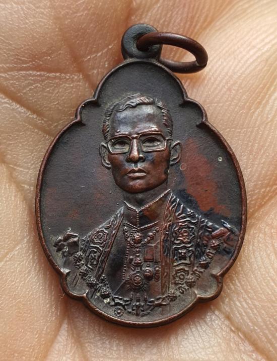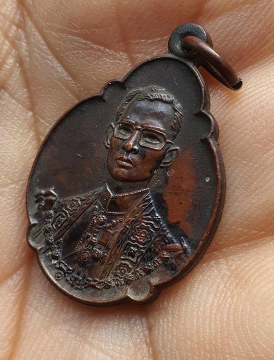 เหรียญในหลวง ร.9 พระบรมราชสมภพครบ 4 รอบ เนื้อทองแดงรมดำ พิมพ์นิยมผมสามเส้น ปี 2518 |