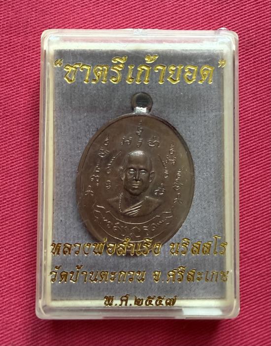 วัดใจไปเลย เหรียญชาตรีเก้ายอด หลวงพ่อสำเริง วัดบ้านตะกวน ปี 2557 เนื้อทองแดง ตีขอบกระบอกหูเชื่อม หมายเลข 359