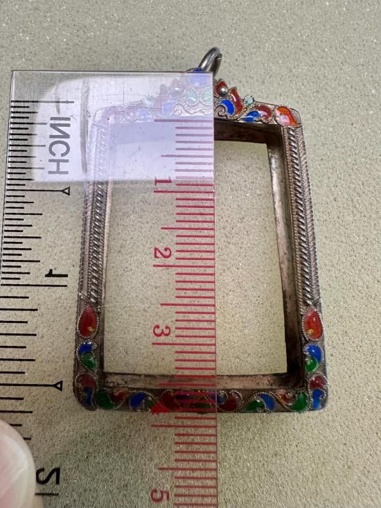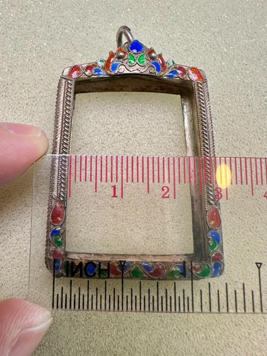 ตลับเงินแท้ลงยา ทรงสมเด็จ แบบดึงสลักด้านใต้ พร้อมใช้งาน หนัก 14.57 กรัม ขนาดวัดจากด้านในกรอบ มีรูปเพิ่มเติมด้านล่างค่ะ