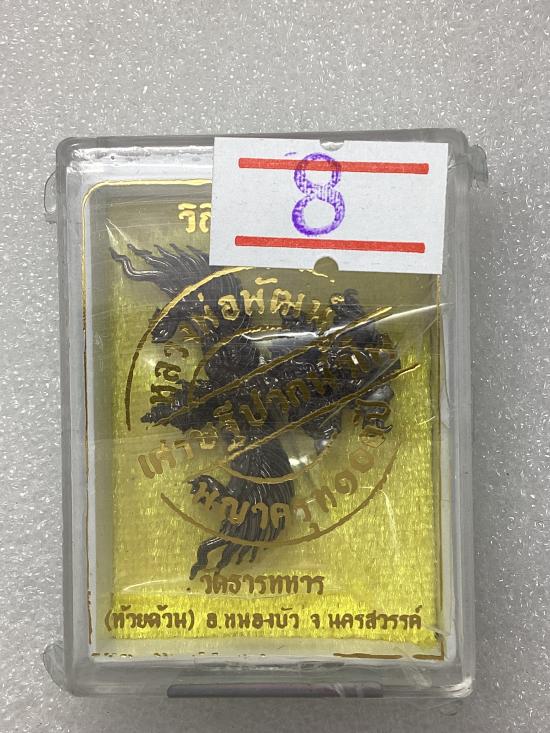 พญาครุฑ ๑๐๐ ปี เศรษฐีปากน้ำโพ หลวงปู่พัฒน์ วัดห้วยด้วน (วัดธารทหาร) จ.นครสวรรค์ พิมพ์เล็ก เนื้อมหาชนวนรมดำ ขนาด 2.5 ซ.ม.(แจกในพิธี) ซีลเดิมยังไม่ได้แกะ |