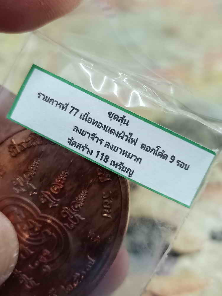 วัดใจ 100 เหรียญรุ่นแรก พิมพ์ใส่หมวก หลวงปู่บุญมา สำนักสงฆ์เขาแก้วทอง จ.ปราจีนบุรี 2567 ทองแดงผิวไฟ ตอก 9 รอบ ลงยา หมายเลข 92 สร้าง 118 กล่องเดิม