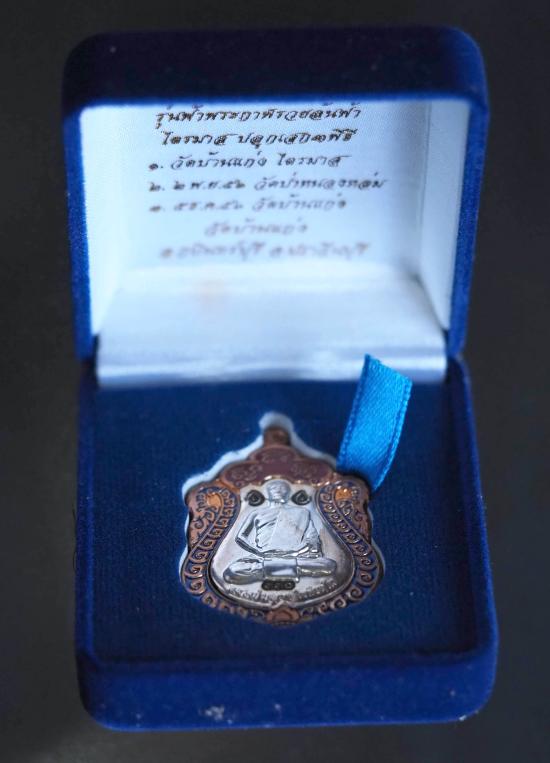 รายละเอียด เหรียญเสมา ฟ้าพระกาฬรวยล้นฟ้า เนื้อนวโลหะลงยาหน้าน้ำเต้าเงิน โค๊ด เลข พ.ศ.2556 สภาพสวย หลวงปู่บุญมา วัดบ้านแก่ง จ.ปราจีนบุรี สวยกล่องเดิม เคาะแรก