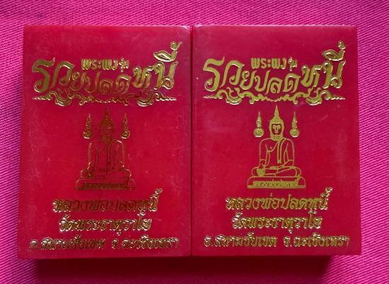 วัดใจไปเลยพระผงหลวงพ่อปลดหนี้ รุ่นรวยปลดหนี้ วัดพระธาตุวาโย จ.ฉะเชิงเทรา เนื้อผงสีดำ ฝังตะกรุดทองแดง 2 ดอก จำนวน 2 องค์ |