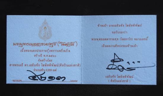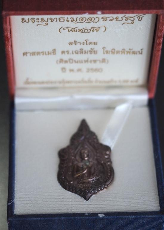 เหรียญพระพุทธเมตตารวยสุข(โฆสกาโร) เนื้อทองแดงประกายรุ้ง โค๊ด เลข ลายเซ็นต์ อุปกรณ์ถุงครบๆ