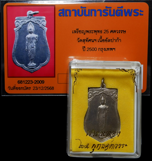 เหรียญเสมา พระพุทธ 25 ศตวรรษ เนื้ออัลปาก้า พิมพ์ลึก(แขนโต) นิยม มีบัตรรับรอง พร้อมเรียบร้อย บูชาสะสมสบายใจ ประหยัดค่าออกบัตรไปได้อีก..