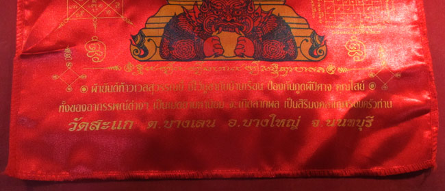 ผ้ายันต์ ท้าวเวสสุวรรณ วัดสะแก ต.บางเลน อ.บางใหญ่ จ.นนทบุรี ครับ